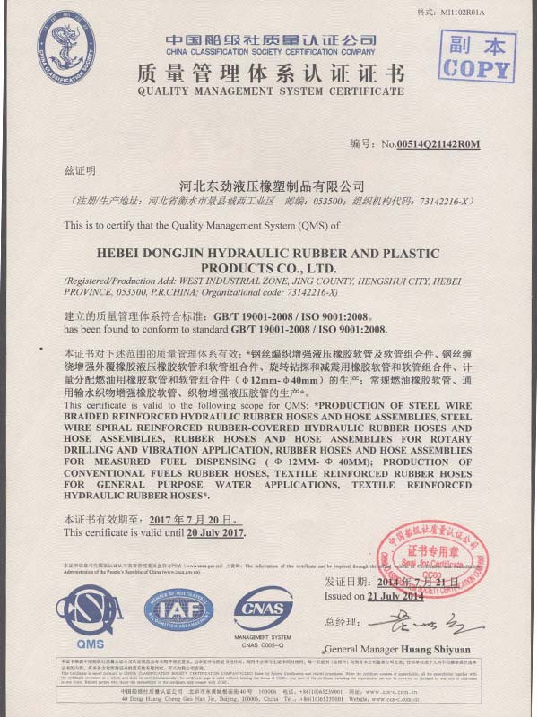 • 鋼絲編織管采用國(guó)際標(biāo)準(zhǔn)認(rèn)可認(rèn)可證書